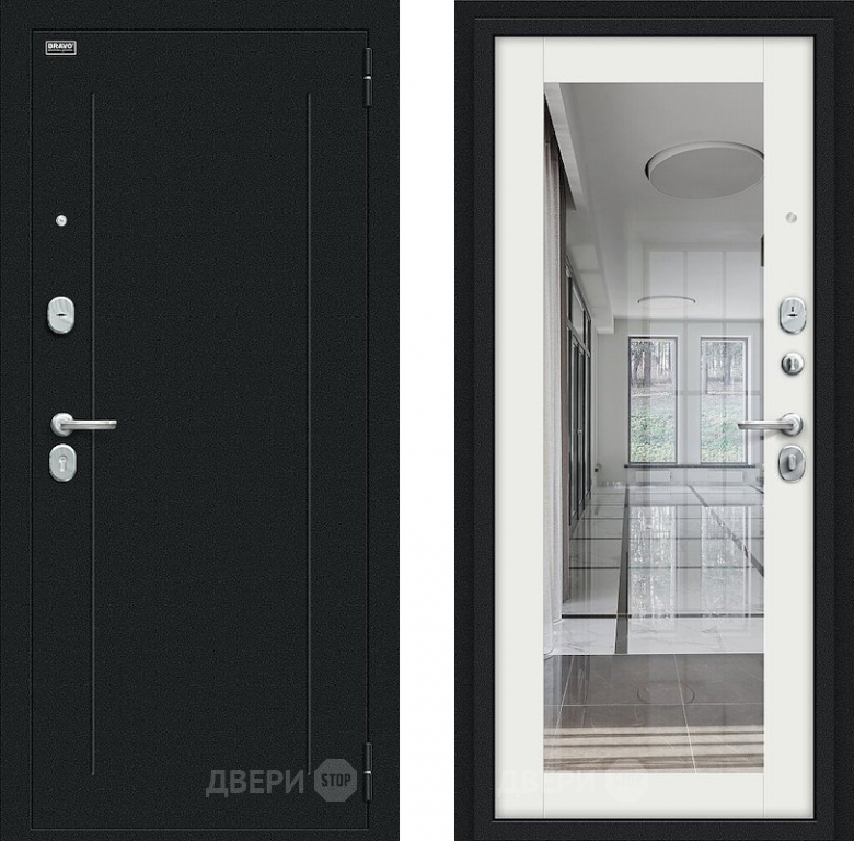 Входная металлическая Дверь Bravo Флэш Букле черное/Bianco Veralinga в Голицыно 860х2050 мм