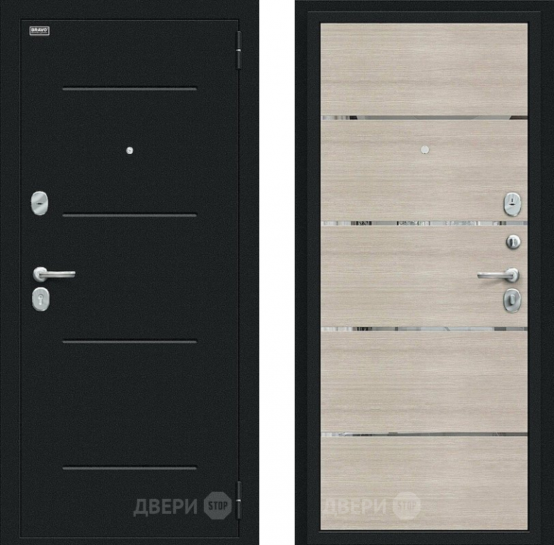 Входная металлическая Дверь Bravo Лайн Букле черное/Cappuccino Veralinga в Голицыно 860х2050 мм