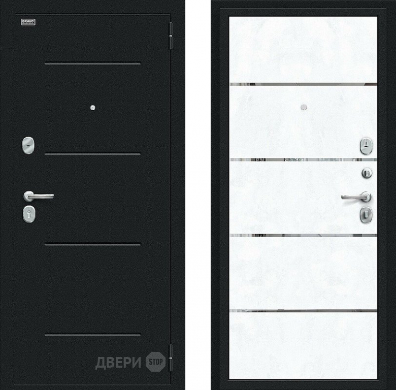 Входная металлическая Дверь Bravo Лайн Букле черное/Snow Art в Голицыно 860х2050 мм