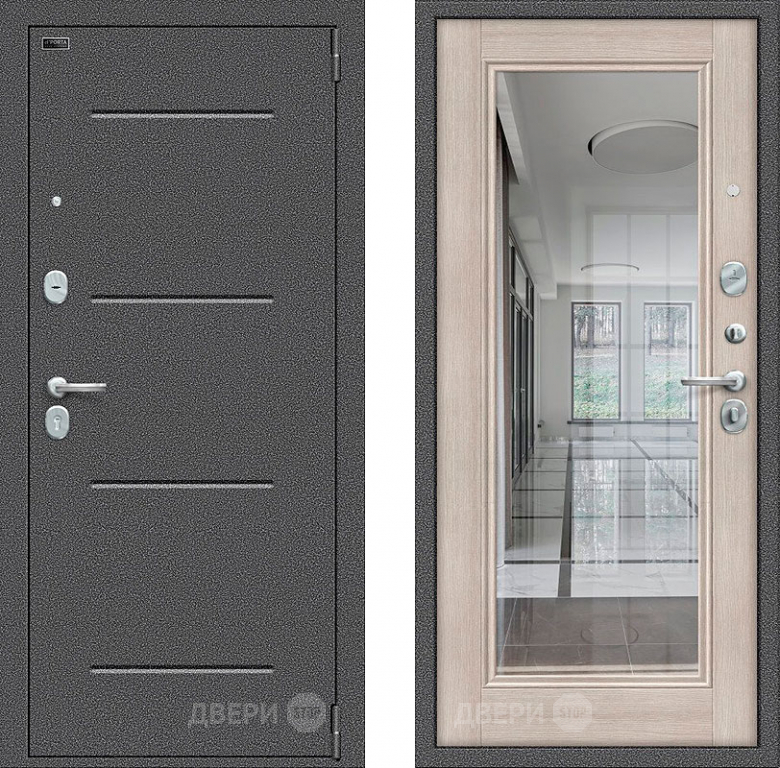 Входная металлическая Дверь Bravo Porta S-2 104/П61 с зеркалом Капучино в Голицыно 860х2050 мм