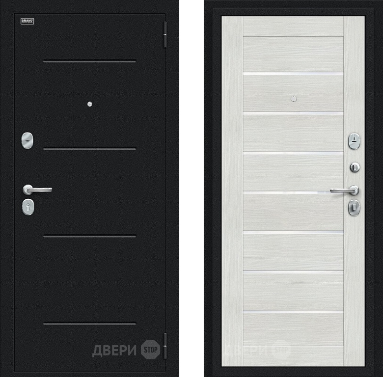 Входная металлическая Дверь Bravo Техно Букле черное/Bianco Veralinga в Голицыно 860х2050 мм