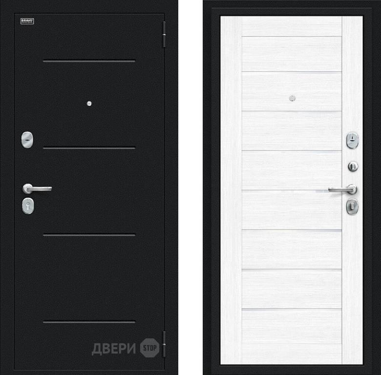 Входная металлическая Дверь Bravo Техно Букле черное/Snow Melinga в Голицыно 860х2050 мм
