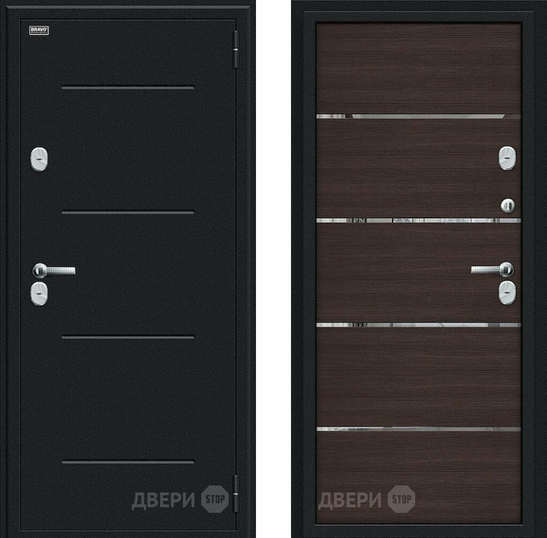 Входная металлическая Дверь Bravo Thermo Лайн Букле черное/Wenge Veralinga в Голицыно 860х2050 мм