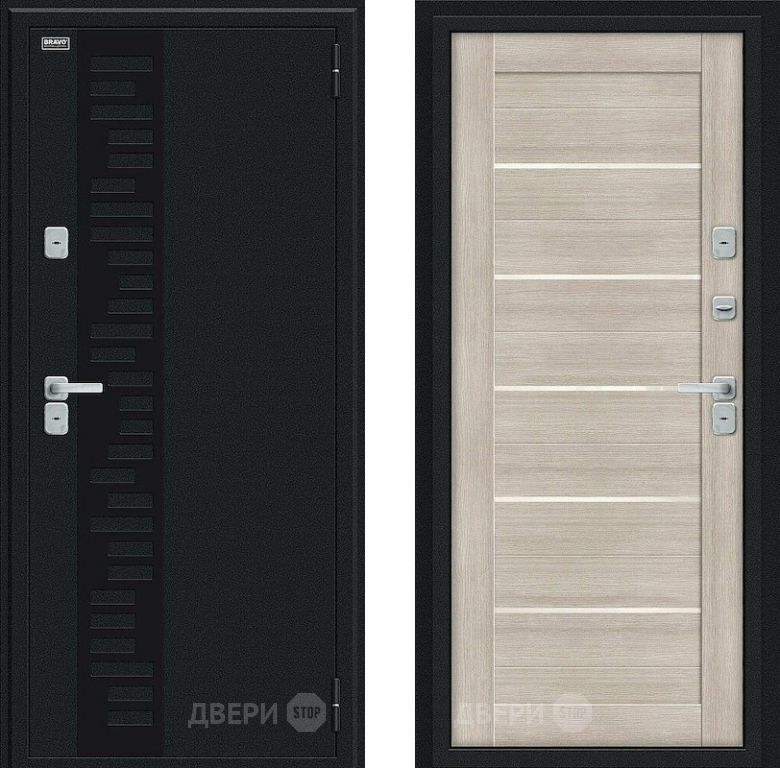 Входная металлическая Дверь Bravo Thermo Техно Декор Букле черное/Cappuccino Veralinga в Голицыно 860х2050 мм