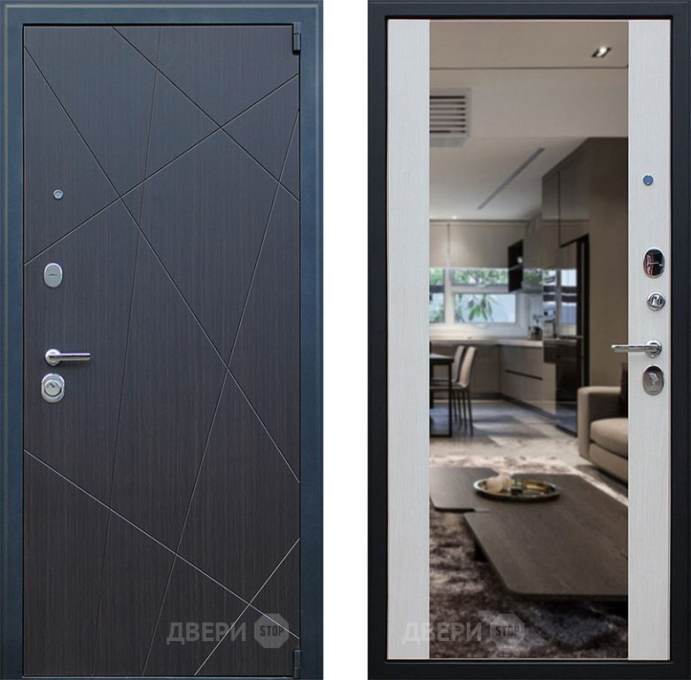 Входная металлическая Дверь АСД Вектор с зеркалом Лиственница белая в Голицыно 860х2050 мм