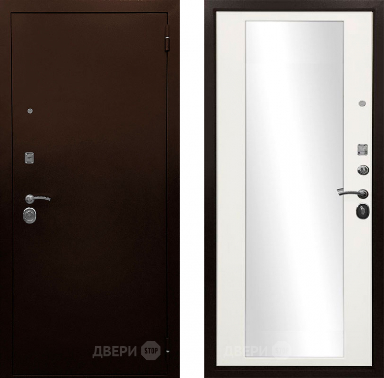 Входная металлическая Дверь Ратибор Рим 3К зеркало Белый матовый в Голицыно 860х2050 мм