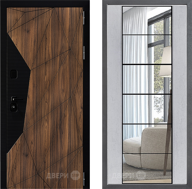 Входная Дверь Дверной континент ДК-11 ФЛЗ-2 Зеркало Бетон светлый 860x2050 мм