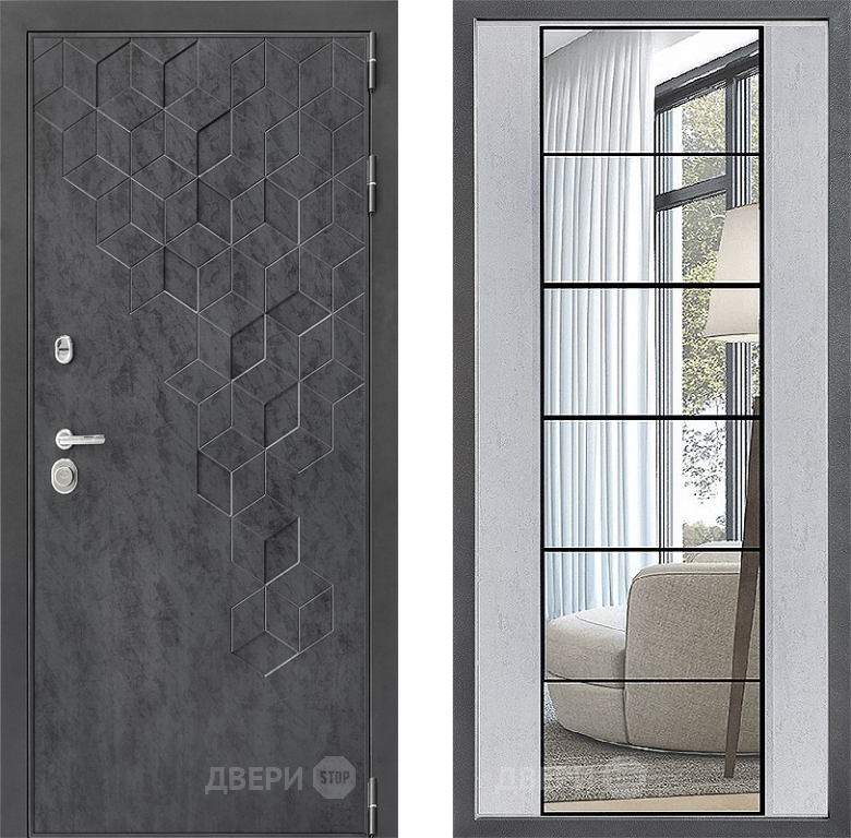 Входная Дверь Дверной континент ДК-3/713 ФЛЗ-2 Зеркало Бетон светлый 860x2050 мм