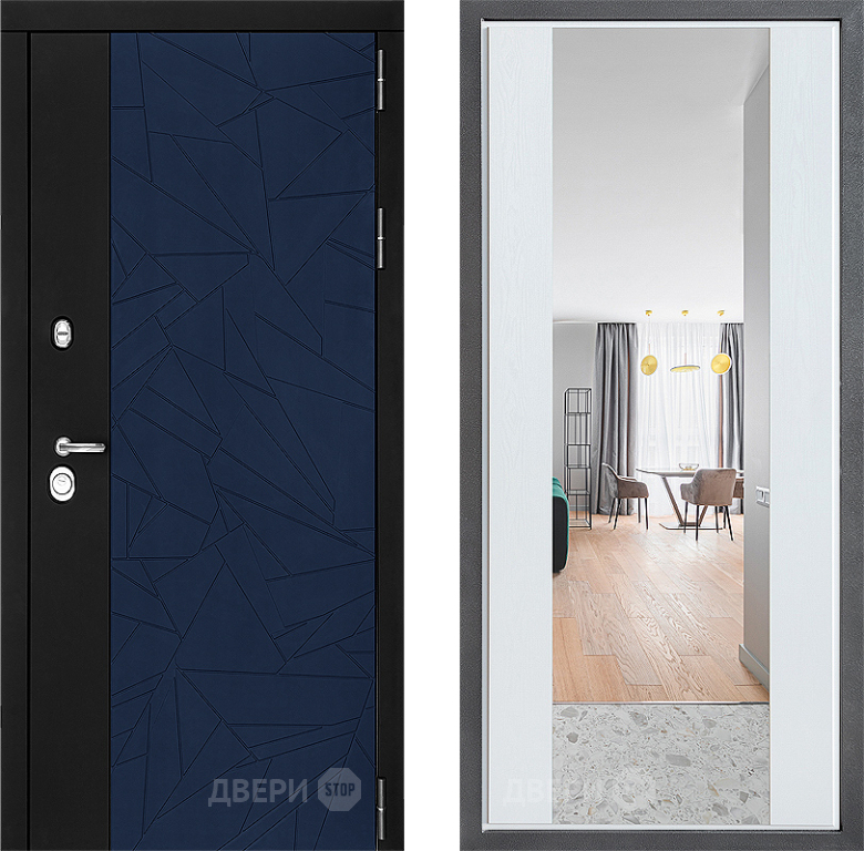 Входная Дверь Дверной континент ДК-9 ФЛЗ-1 Зеркало Белое дерево 860x2050 мм