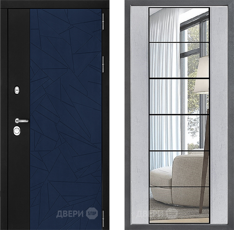 Входная Дверь Дверной континент ДК-9 ФЛЗ-2 Зеркало Бетон светлый 860x2050 мм