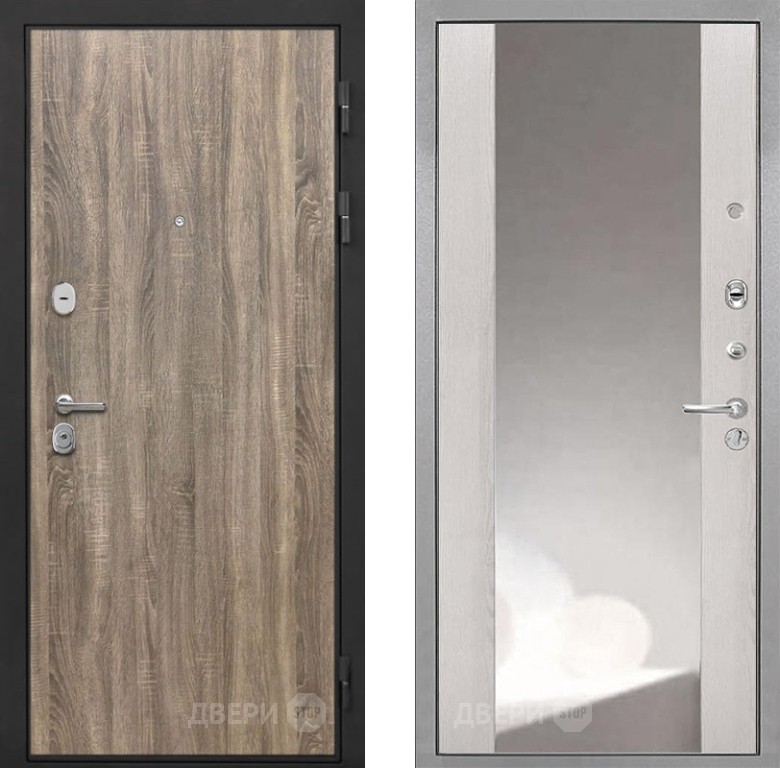 Входная Дверь Интекрон (INTECRON) Гектор Дуб Турин ФЛЗ-516 Зеркало Сосна белая 860x2050 мм