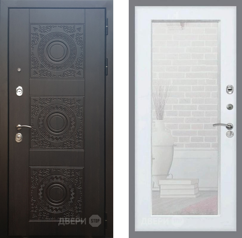 Входная Дверь Рекс (REX) 10 Зеркало Пастораль Силк Сноу 860x2050 мм