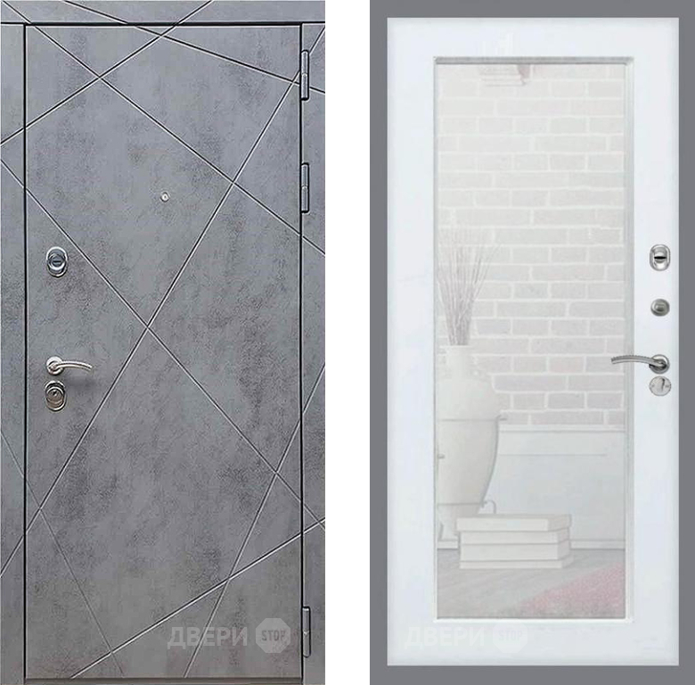 Входная Дверь Рекс (REX) 13 Бетон Темный Зеркало Пастораль Белый ясень 860x2050 мм