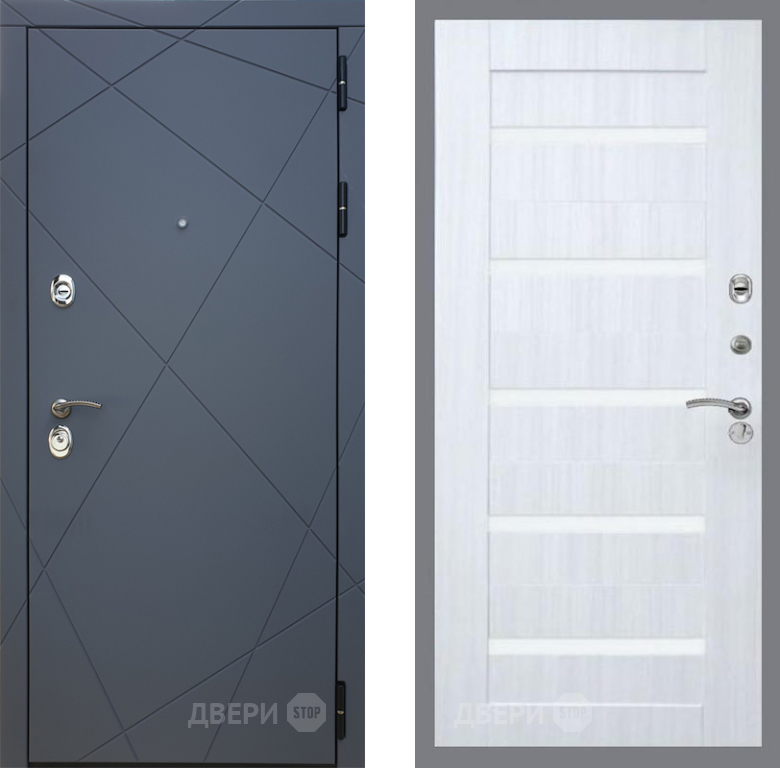Входная Дверь Рекс (REX) 13 Силк Титан СБ-14 стекло белое Сандал белый 860x2050 мм