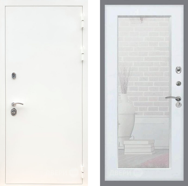 Входная Дверь Рекс (REX) 5 Белая Шагрень Зеркало Пастораль Белый ясень 860x2050 мм