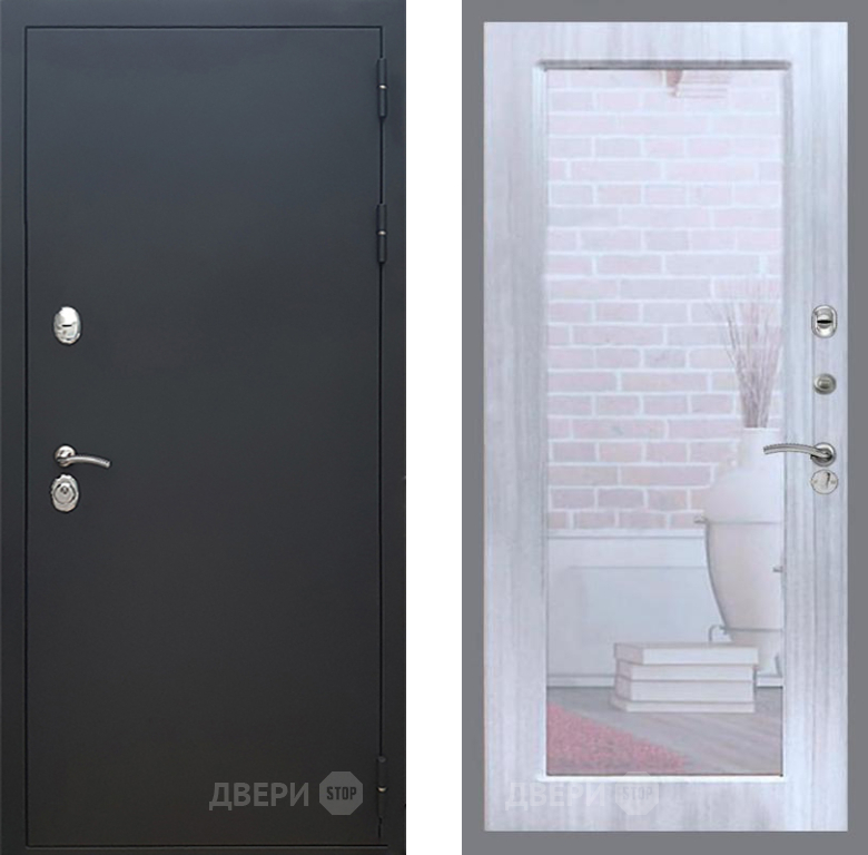 Входная Дверь Рекс (REX) 5 Черный Муар Зеркало Пастораль Сандал белый 860x2050 мм