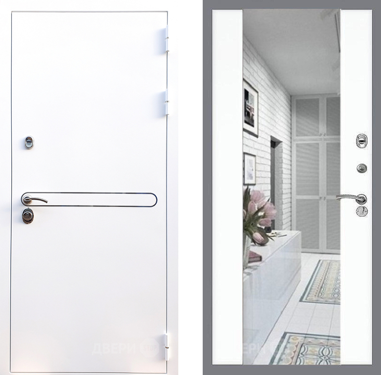 Входная Дверь Стоп Лайн Вайт Зеркало СБ-16 Силк Сноу 860x2050 мм