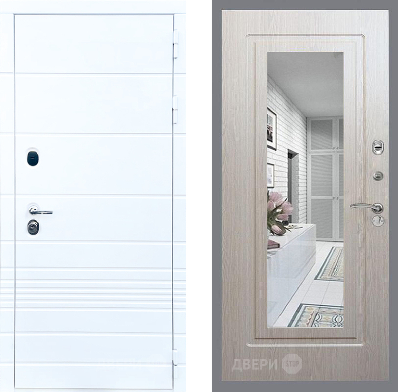 Входная Дверь Стоп ТРЕНДО Зеркало ФЛ-120 Беленый дуб 860x2050 мм