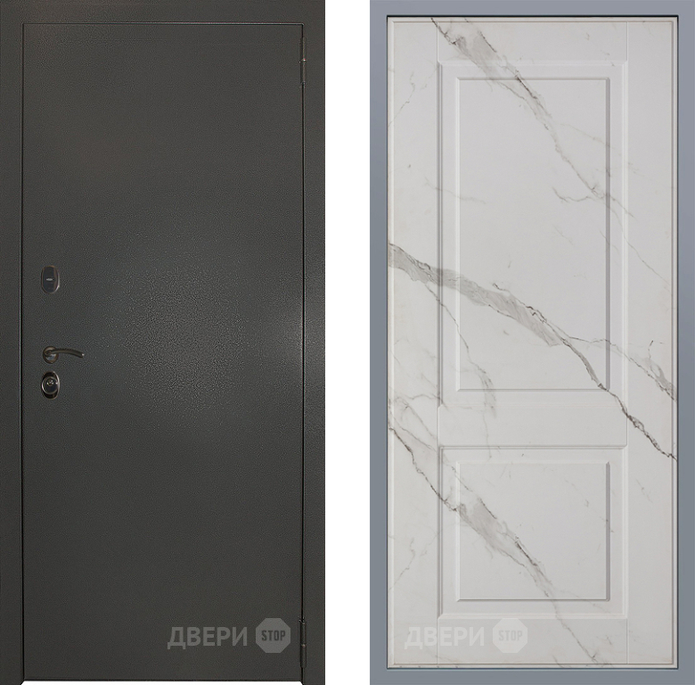 Входная Дверь Заводские двери Эталон 3к антик серебро Доррен Мрамор белый 860x2050 мм